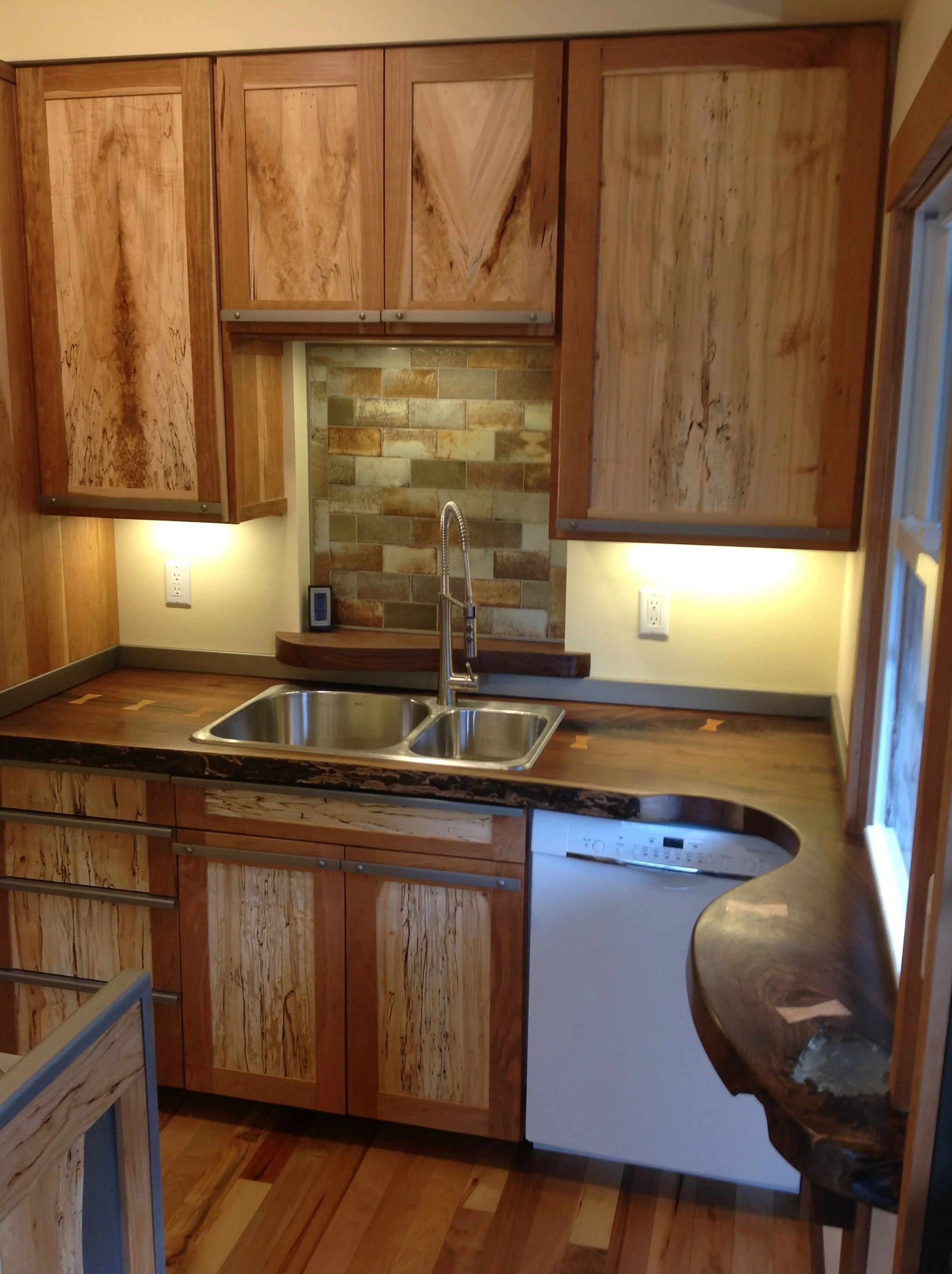Custom built kitchen cabinets in cherry and spalted maple panels