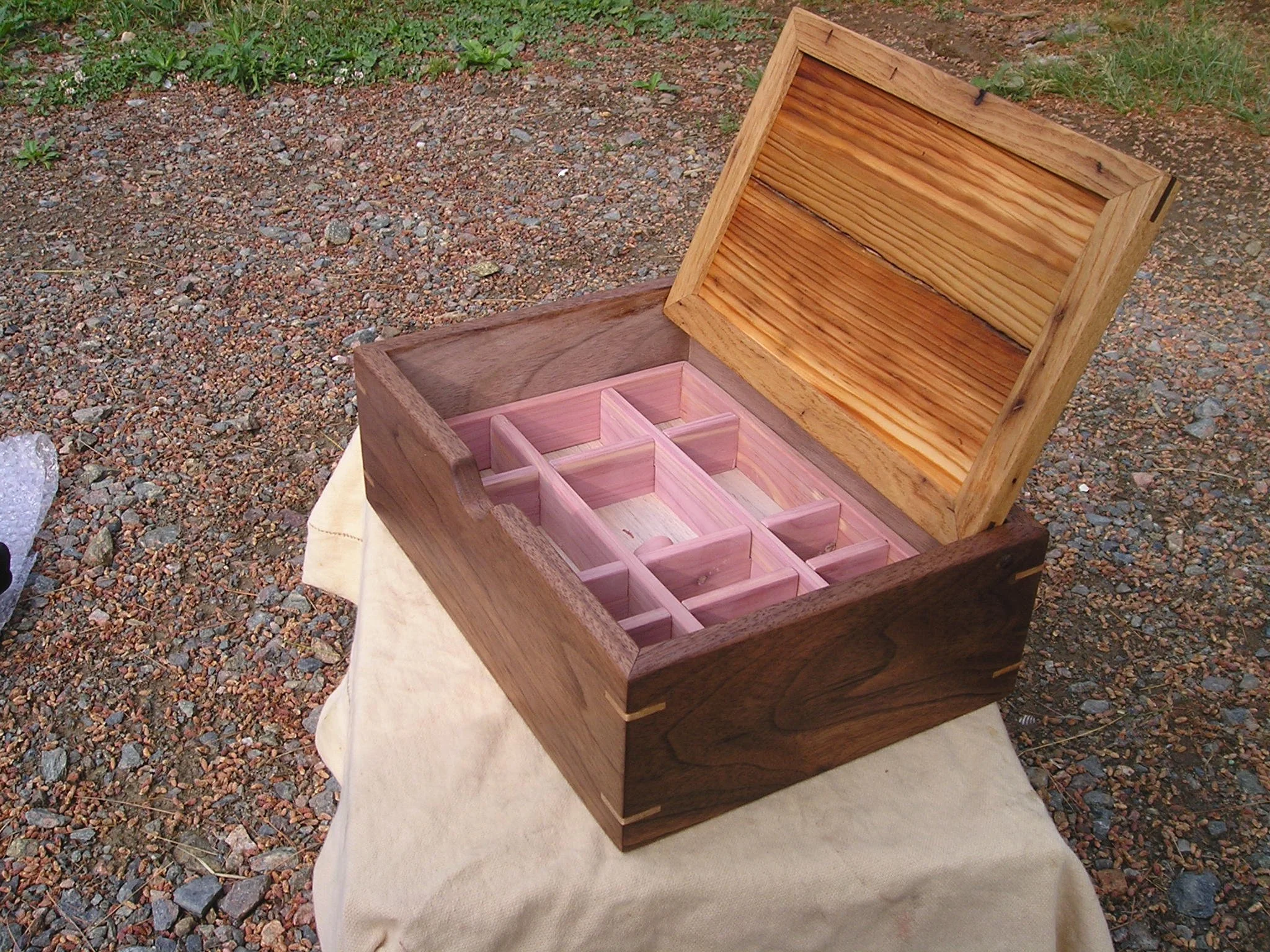 Jewelry box in walnut and reclaimed barn wood with cedar trays