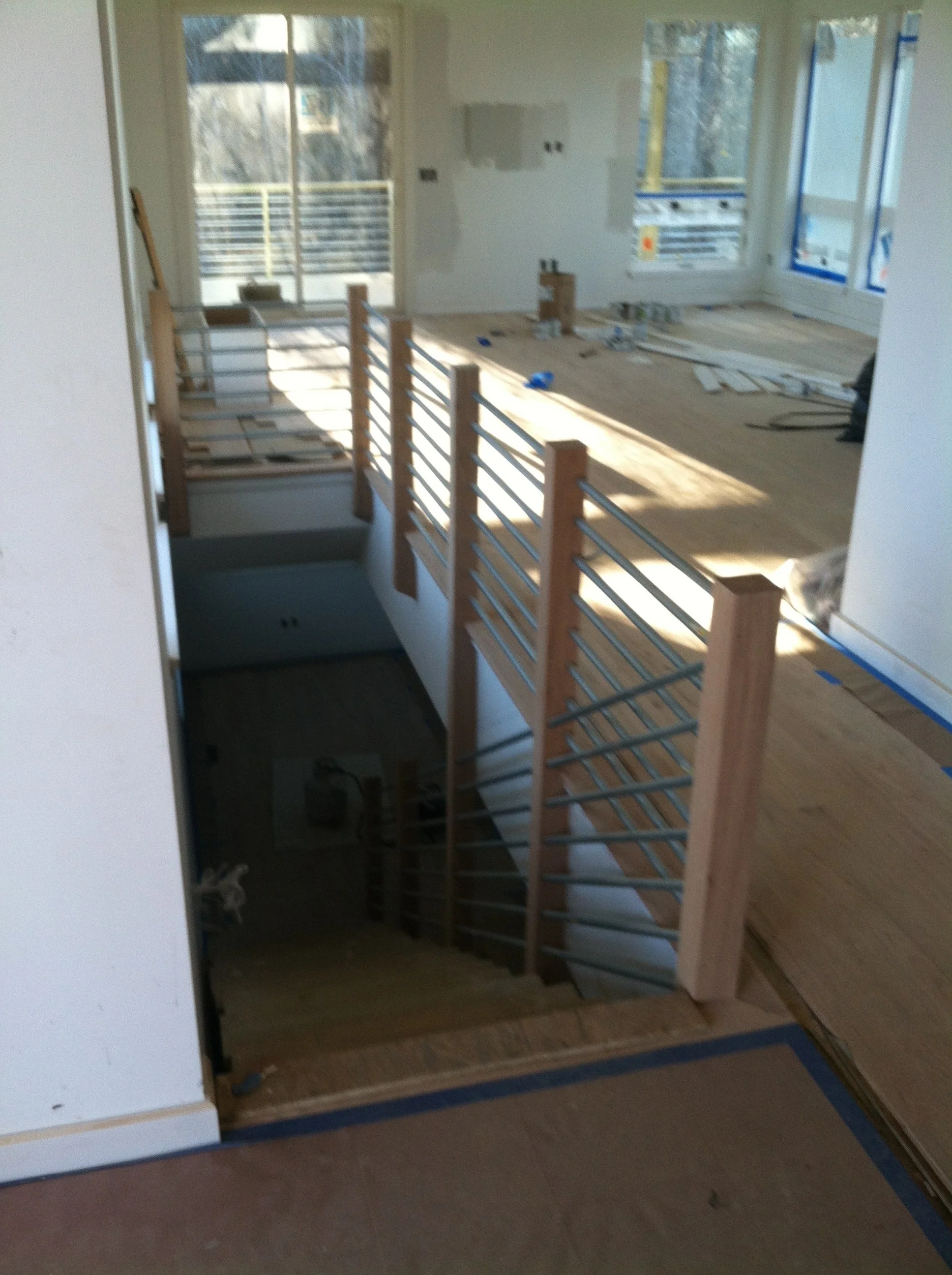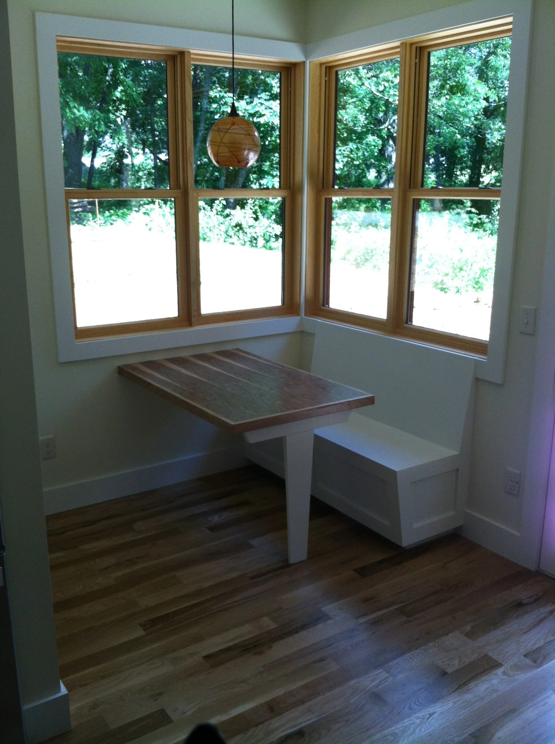 Breakfast table in bubinga and maple. Design by Tom Owens